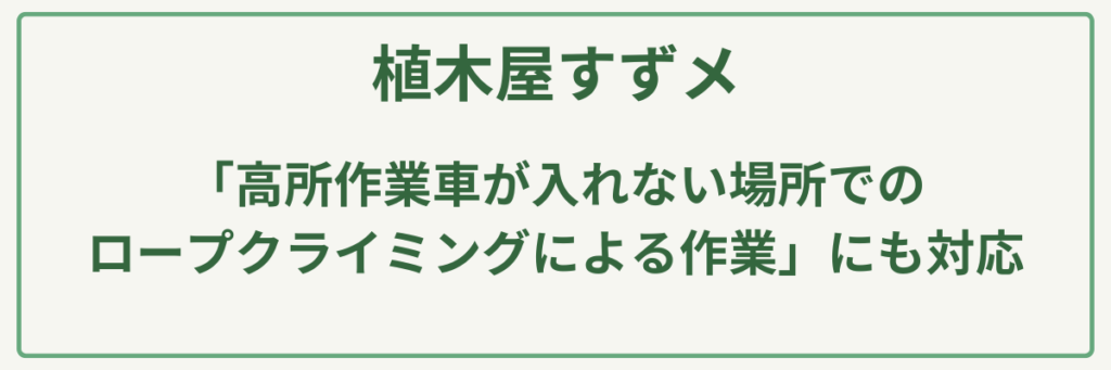 | 対応サービス | 剪定、伐採、刈り込み、消毒、草刈り、ロープクライミングによる高所作業、空き家管理 |