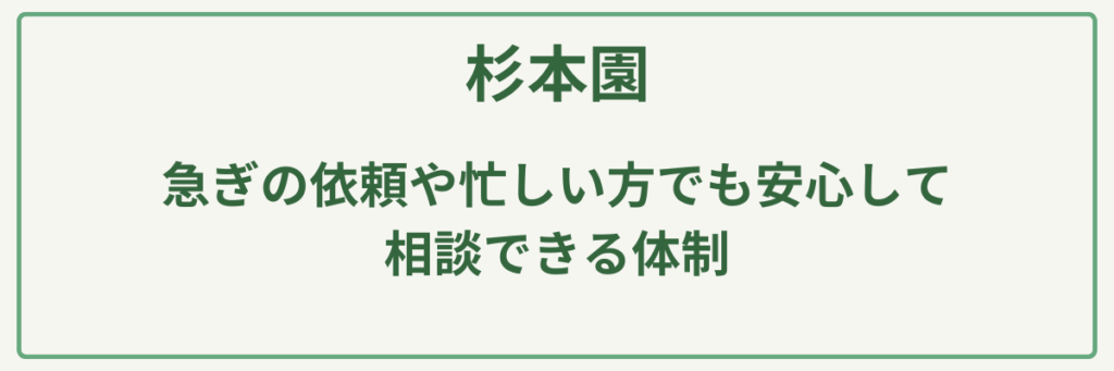 | ポイント | 夫婦で営む安心感と信頼性/女性スタッフ同伴での訪問可能/地域密着の柔軟な対応力/空き家管理やお墓参り代行にも対応/見積無料/LINEでの相談可能 |