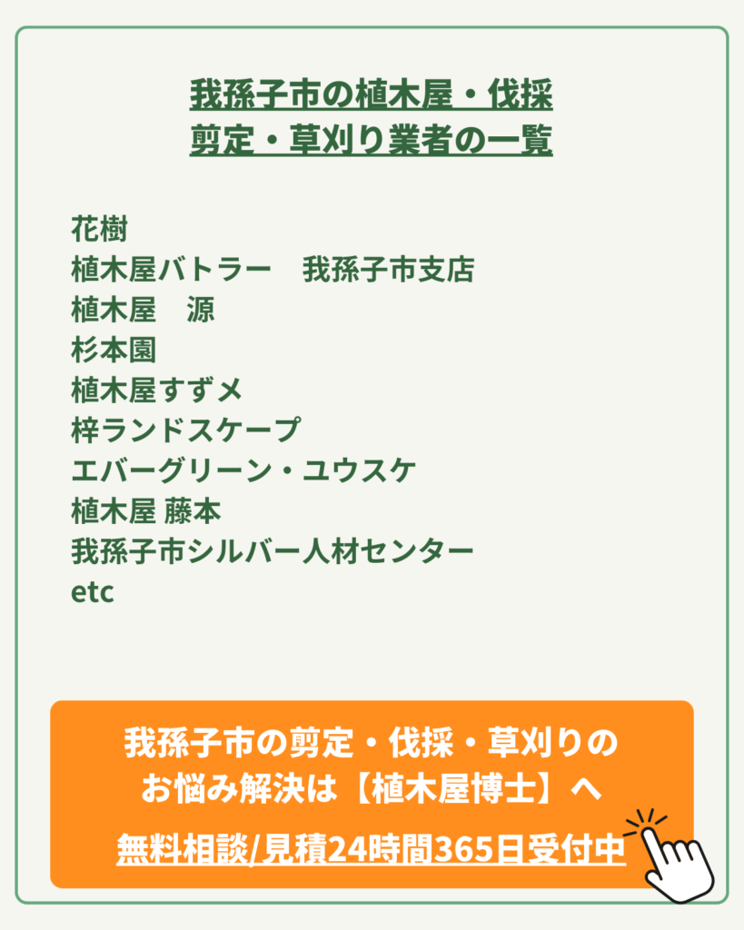 | 対応サービス | 剪定・伐採・抜根・草刈り・除草・防草工事 |