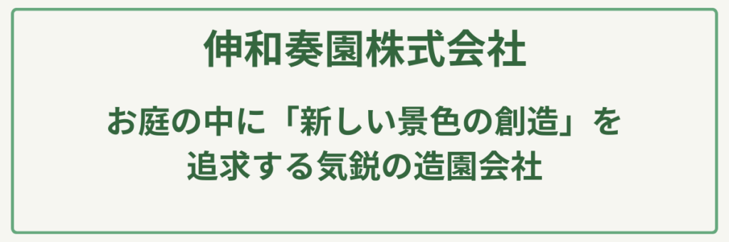 | 対応サービス | 造園設計・施工、剪定、石工事、水景施工、メンテナンス |