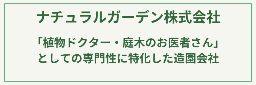 | 対応サービス | 樹木剪定・除草・芝刈り・消毒(病害虫対策)・造園/緑化工事 |