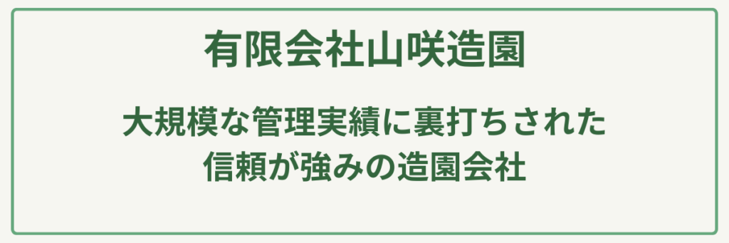 | 対応サービス | マンション植栽管理、公共工事(公園・街路樹管理)、庭木の剪定、植え替え、芝生手入れ、花壇整備 |