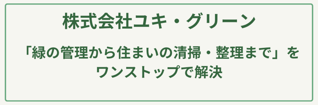 墨田区と足立区を拠点に展開する株式会社ユキ・グリーンは、「緑の管理から住まいの清掃・整理まで」をワンストップで解決する、暮らしのトータルケアに長けた造園会社です。公共公園や街路樹の維持管理で培った確かな技術をベースに、個人邸の剪定、さらには遺品整理や特殊清掃、リフォームまで、住まいに関わる幅広いお悩みに誠実に応えています。