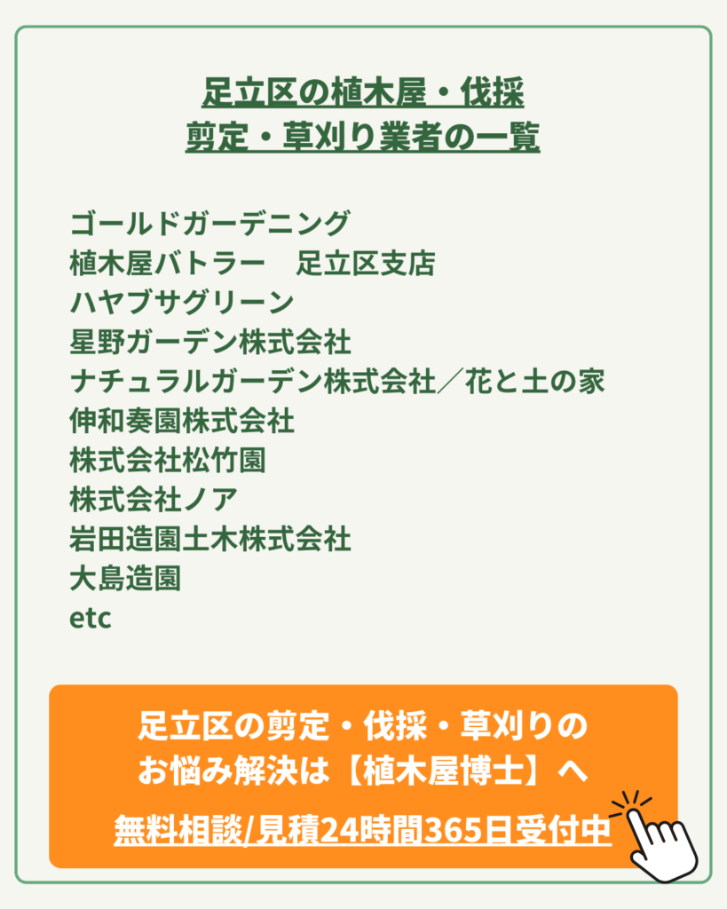 今回は、そんなお悩みを抱えるあなたに向けて、植木屋博士運営が、足立区の植木屋さん達をご紹介します。