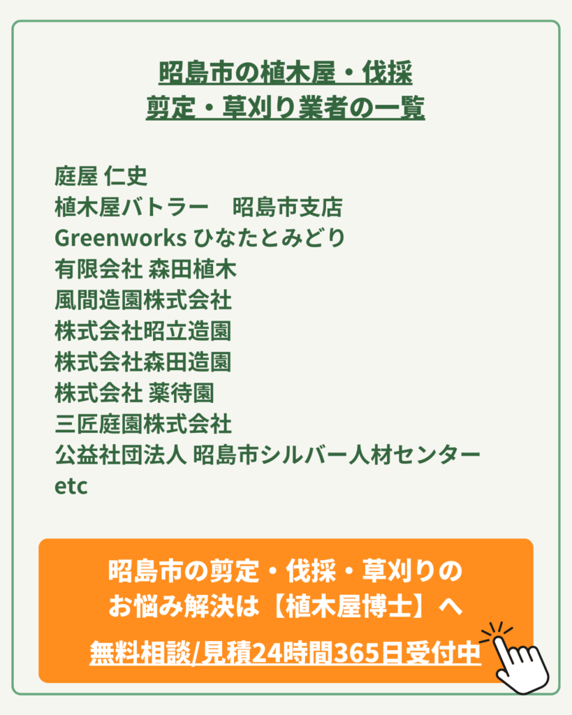 今回は、そんなお悩みを抱えるあなたに向けて、植木屋博士運営が、昭島市の植木屋さん達をご紹介します。