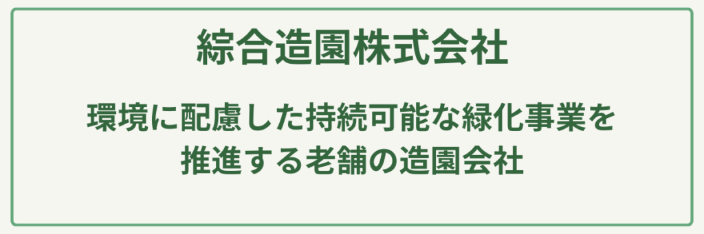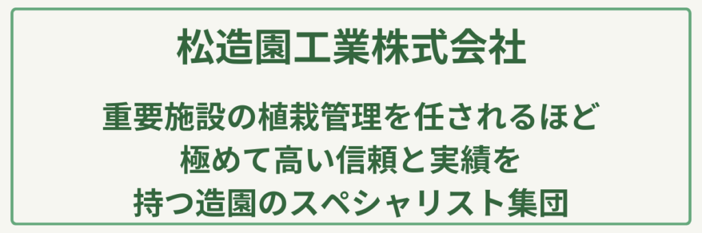 | 対応サービス | 造園工事・土木工事・庭園管理・植栽工事・外構工事・街路樹剪定・緑地維持管理 |