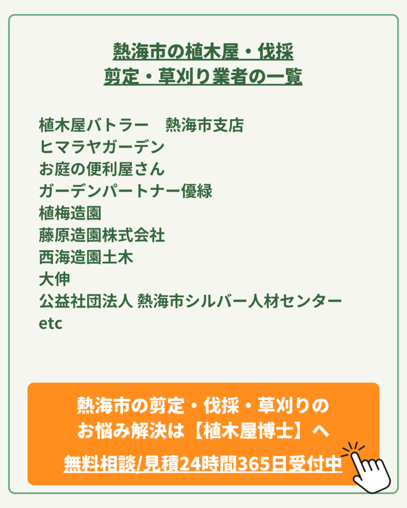 今回は、そんなお悩みを抱えるあなたに向けて、植木屋博士運営が、熱海市の植木屋さん達をご紹介します。
