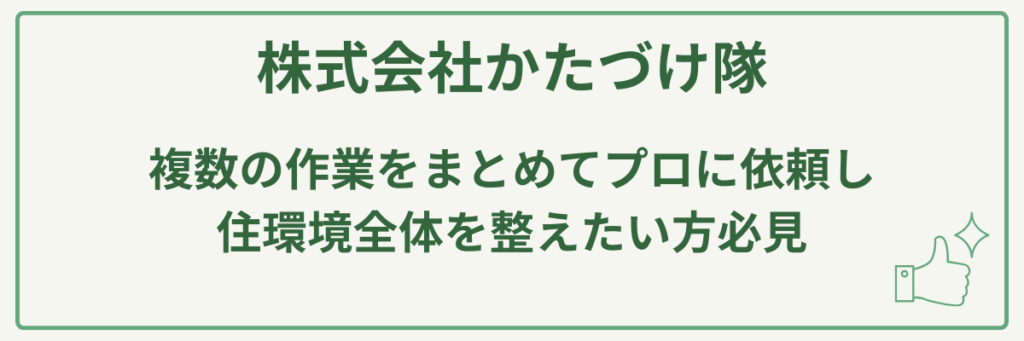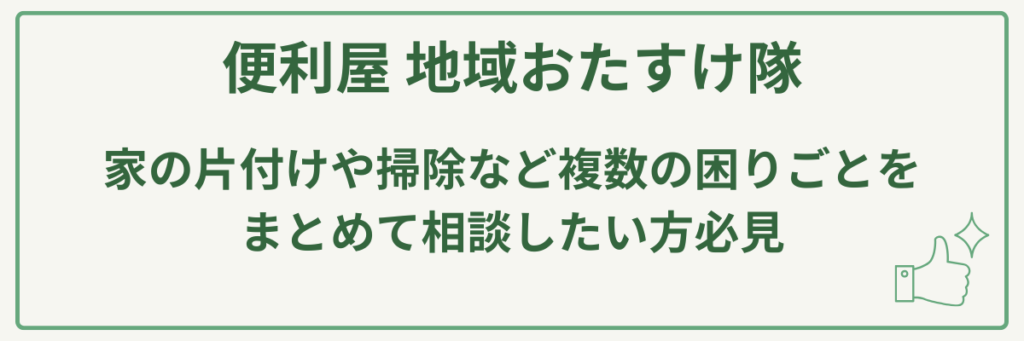このため、庭木の手入れだけでなく、家の片付けや解体、外構工事など、複数の作業をまとめてプロに依頼し、住環境全体を整えたい方におすすめの総合便利屋サービス会社です。