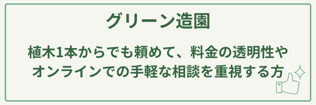 このため、理想のお庭を予算内で造りたい方や、植木1本からでも頼めて、料金の透明性やオンラインでの手軽な相談を重視する方に特におすすめの植木屋です。