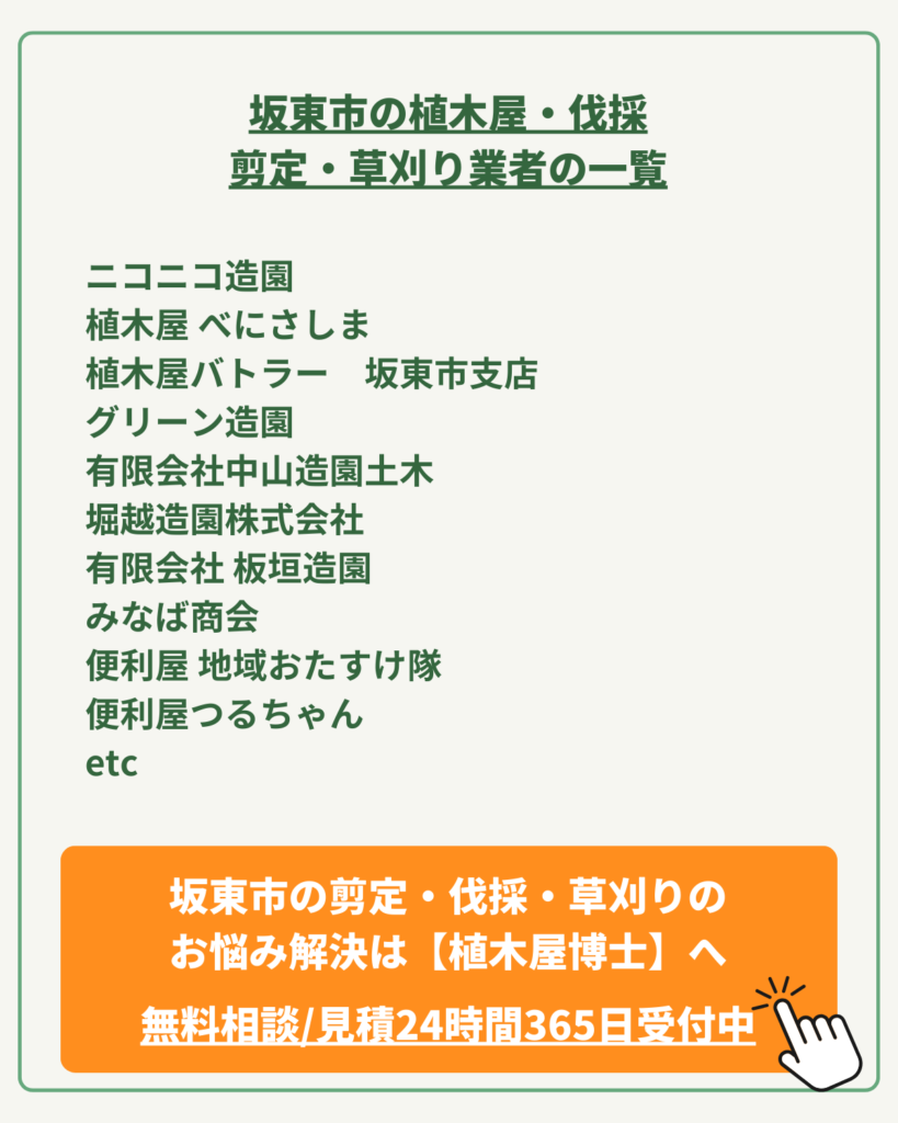 坂東市で植木屋さんを探しているなら、近くのエリアの植木屋さんもチェックしておきたいですよね。
