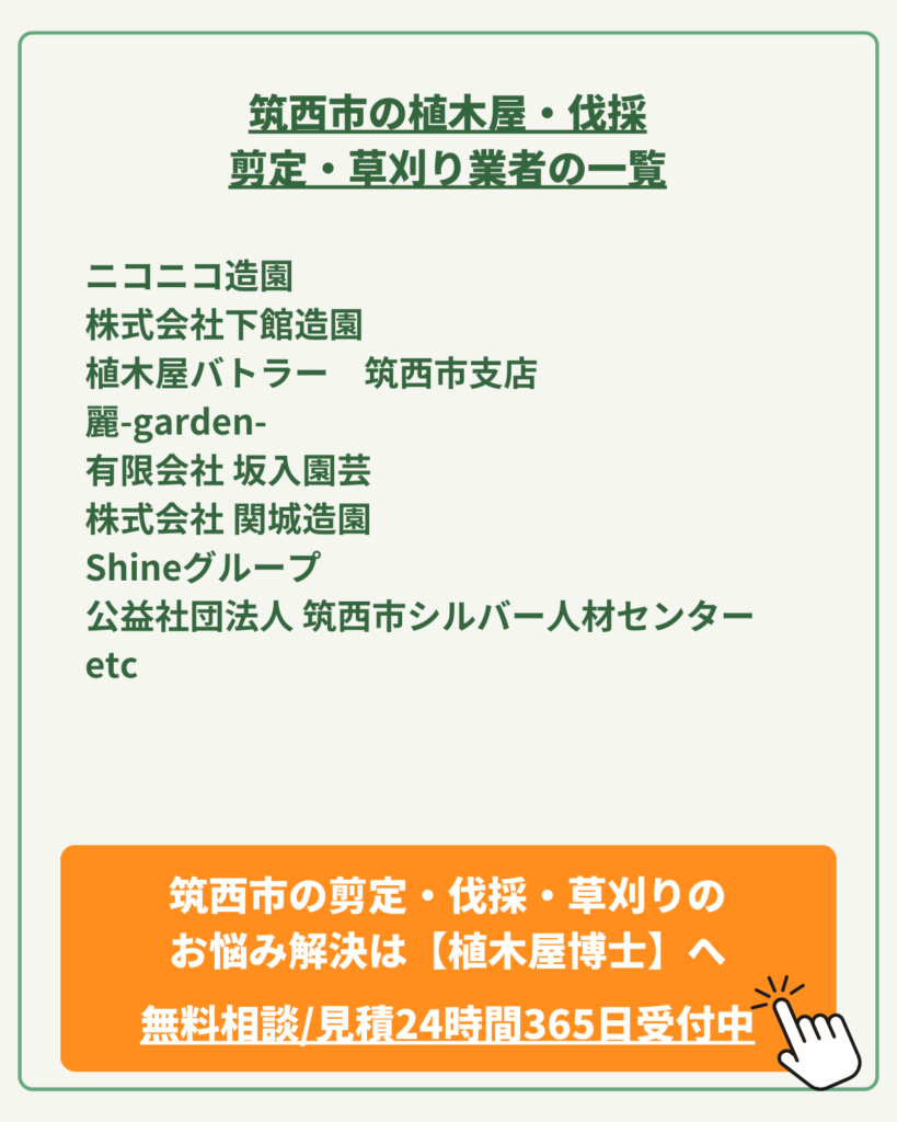 植木屋(剪定・伐採・草刈り業者)選びでお悩みの方は、是非この機会に植木屋博士の無料相談・無料見積をご活用ください。