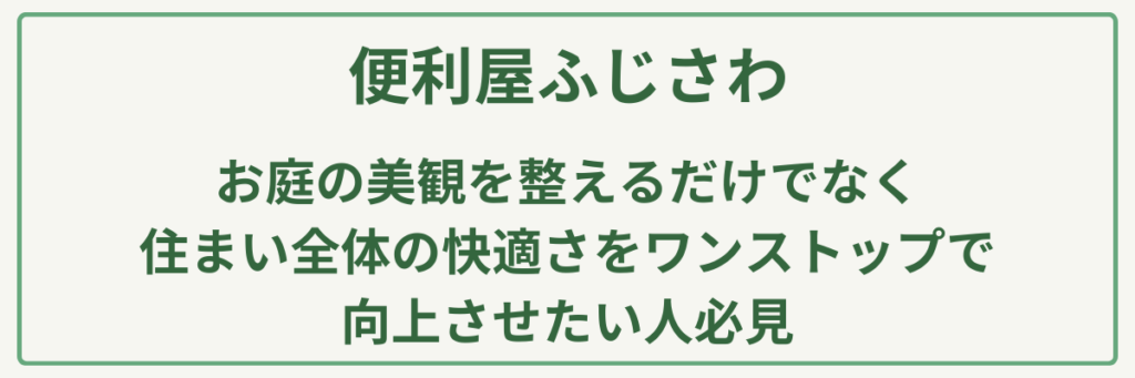 便利屋ふじさわは、神奈川県藤沢市を拠点に、お庭のメンテナンスから家事代行まで幅広く対応する地域密着型の総合生活サポート企業です。最大の強みは、剪定や伐採、抜根といった専門的な造園作業に加え、不用品回収や遺品整理、ハウスクリーニングまでを一手に引き受けられる柔軟性にあります。そのため、**「庭木をスッキリさせたいけれど、同時に溜まった粗大ゴミの処分や物置の片付けも済ませてしまいたい方」や、「高齢者割引などを活用し、身の回りの困りごとを予算を抑えてまとめて解決したい方」**に最もおすすめの植木屋です。