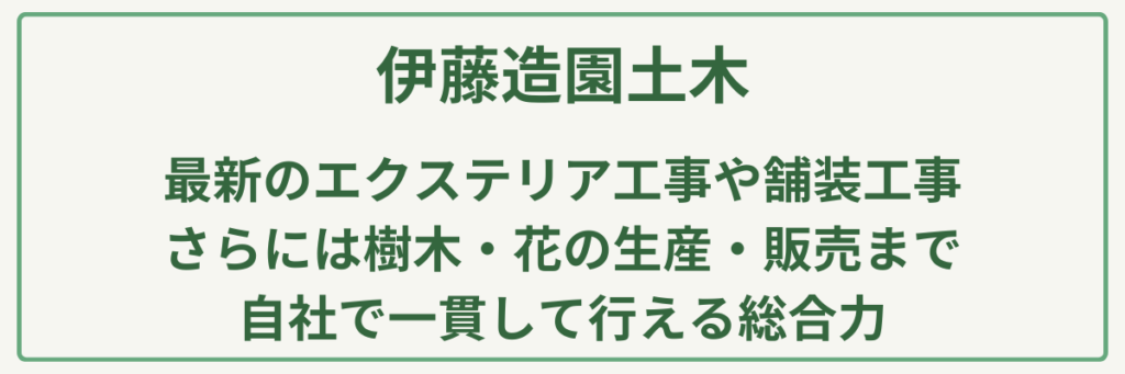 | ポイント | 1級造園施工管理技士・1級造園技能士など専門スタッフ在籍 |