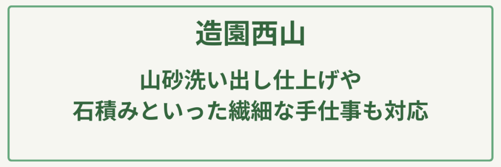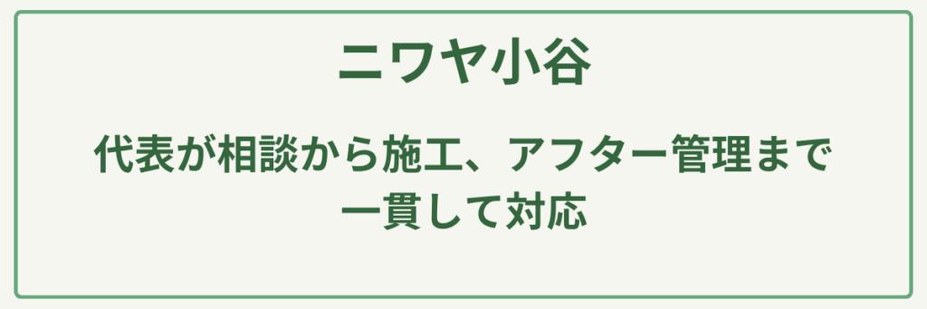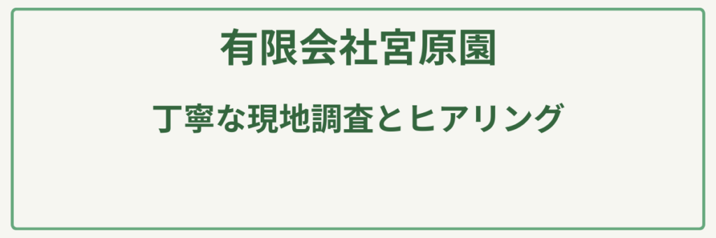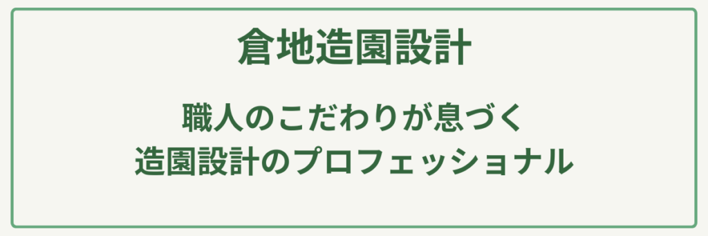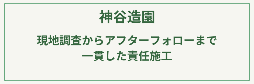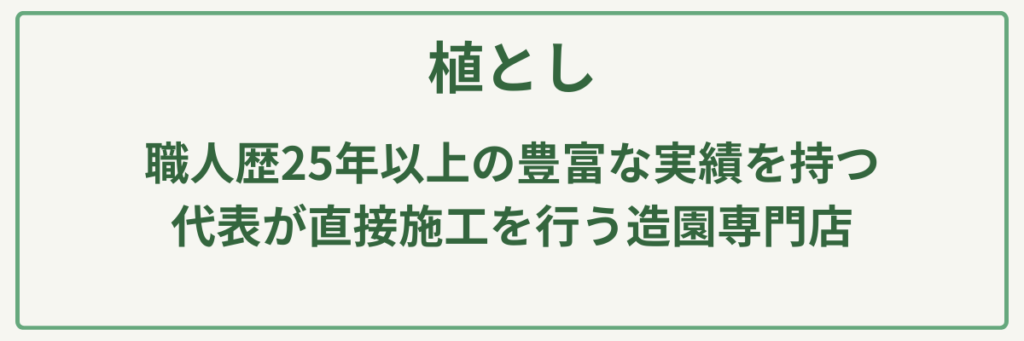 | ポイント | 1級造園技能士等の専門知識を持つ代表が全工程を担当 |