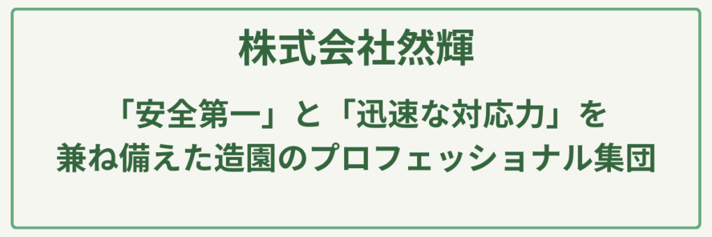 | 対応サービス | 剪定・伐採・庭園設計・施工・緑化管理・造園土木工事全般 |