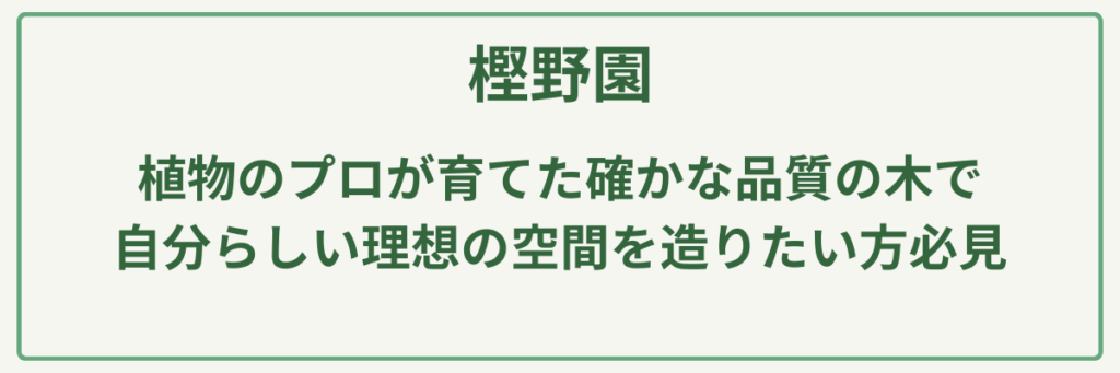 | ポイント | 植木生産・販売歴65年の実績 |