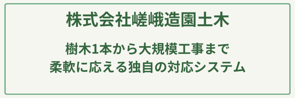 | ポイント | 伝統技法や特殊伐採を含む高度な造園技術を保有 |