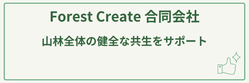 | 対応サービス | 特殊伐採(支障木の伐採・撤去)、山林の管理、木材を使う事業(木質、木造の復権) |