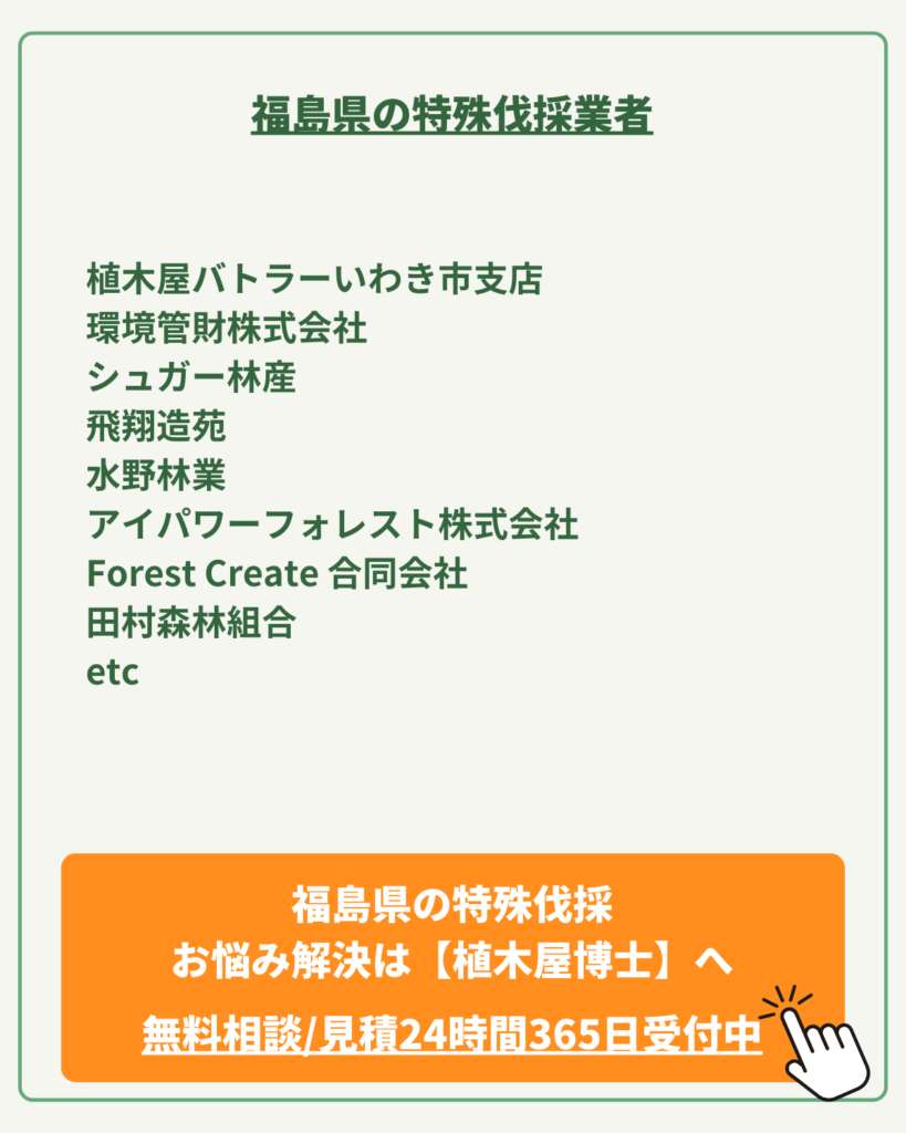 今回は、そんなお悩みを抱えるあなたに向けて、植木屋博士が、福島県の特殊伐採業者さん達をご紹介します。