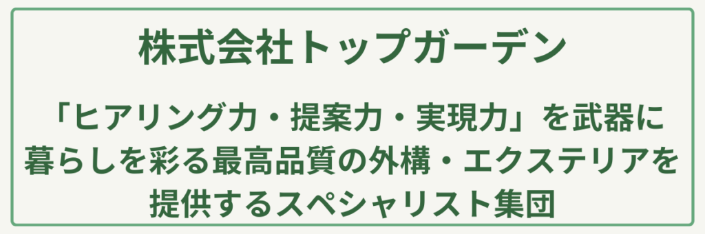 | 対応サービス | ガーデンエクステリア設計・施工、新築・リフォーム外構、造園工事、庭木の剪定・手入れ |
