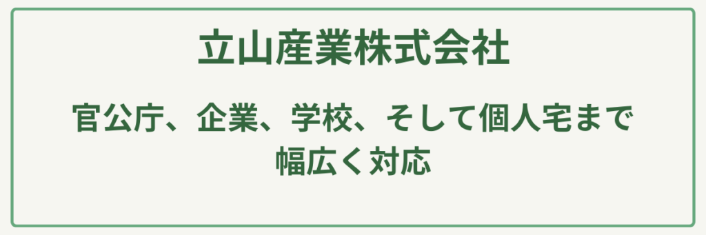 | 対応場所 | 個人宅・官公庁・学校・企業・寺社仏閣・山林 |
