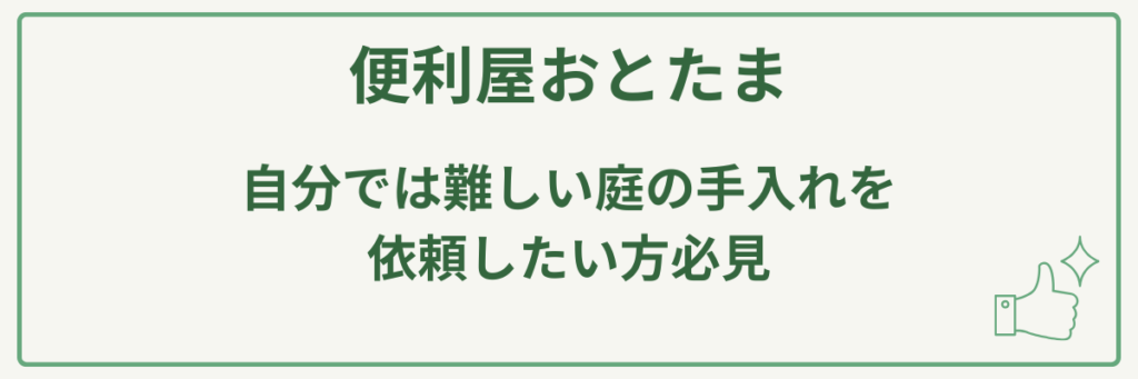 そのため、「プロに頼むほどでもないが、自分では難しい庭の手入れや伐採、草刈り」を、様々な資格を持つ地域密着型の器用な専門家に、安価で気軽に依頼したい人におすすめの便利屋兼植木屋です。