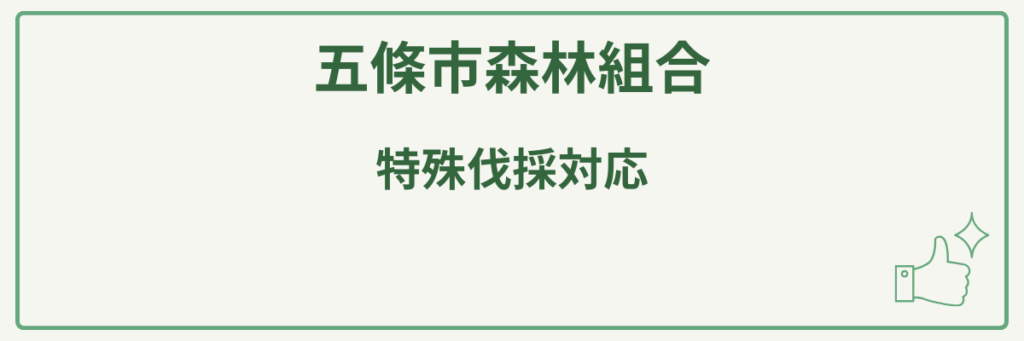 | 対応サービス | 特殊伐採(建物や電線にかかる木の伐採)、枝払い(日当たり改善)、山林の手入れ、作業道の開設、原木の出材、各種手続きの代理申請・ご相談 |
