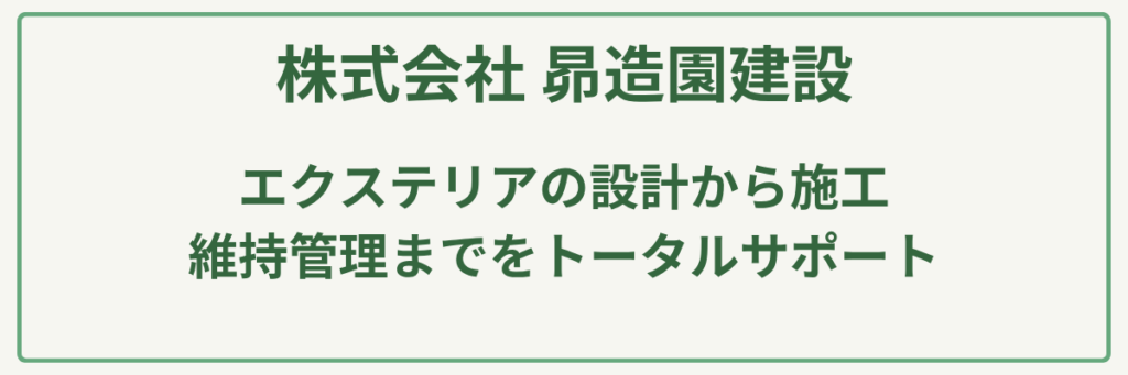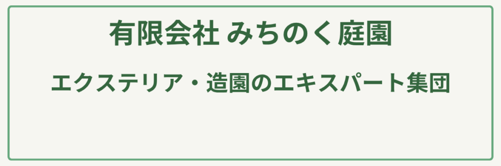 | 対応サービス | 外構工事・エクステリア設計/施工・庭づくり・庭園メンテナンス(自動見積あり)・シンボルツリー提案・フェンス/門回り工事 |