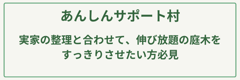 | 対応サービス | 庭木剪定・除草・屋内外清掃・障子張り・大工仕事・墓参代行・家事手伝い・筆耕・建物/駐車場管理 |