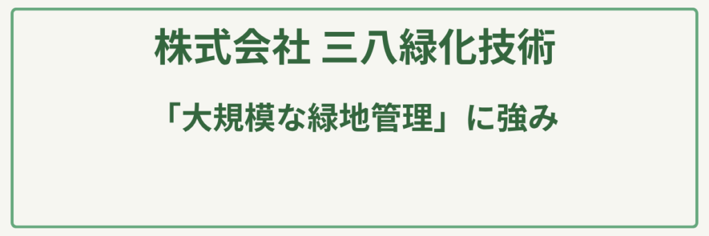 | ポイント | 都市緑化と個人邸の双方に対応するバランスの取れた施工能力/エコアクション21認証取得など、環境に配慮した持続可能な施工体制/「あおもり県内就職促進パートナー企業」に選ばれる信頼の経営/公共インフラの維持管理を担う確かな安全性と技術力/豊富な施工実績に基づく、緑のあるライフスタイルの総合提案/八戸市を中心に津軽・南部エリア広域に対応 |