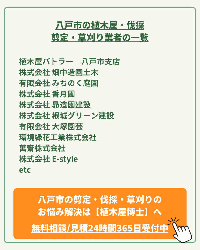 今回は、そんなお悩みを抱えるあなたに向けて、植木屋博士運営が、八戸市の植木屋さん達をご紹介します。