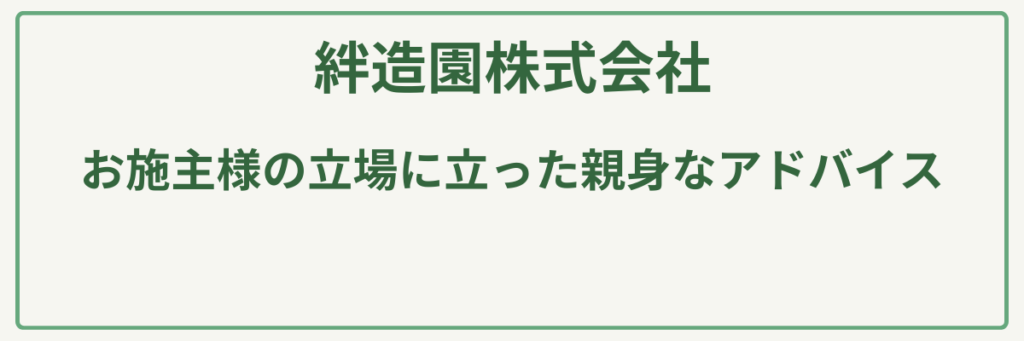 | 対応サービス | 造園工事一式、庭園デザイン・プロデュース、庭木の手入れ(剪定)、維持管理 |