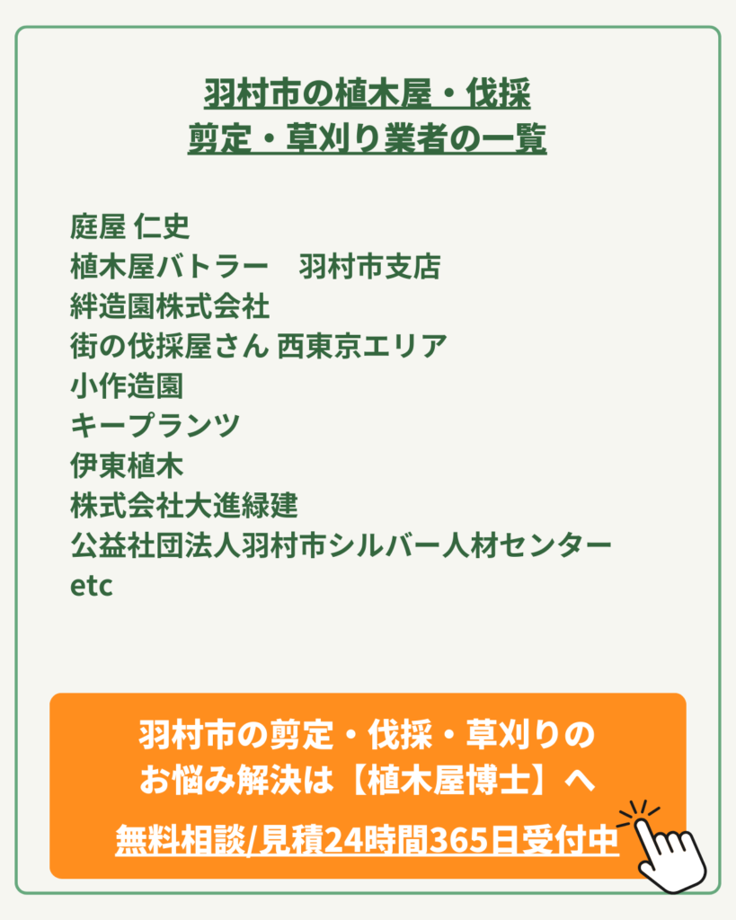 今回は、そんなお悩みを抱えるあなたに向けて、植木屋博士運営が、羽村市の植木屋さん達をご紹介します。