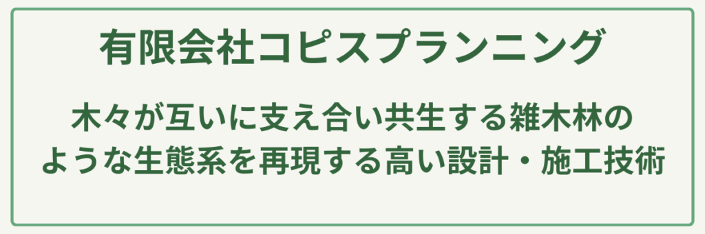 広島県東広島市を拠点とする有限会社コピスプランニングは、「自然の摂理に基づいた雑木の庭」という独自のコンセプトを掲げる造園会社です。最大の強みは、従来の画一的な庭造りとは一線を画し、木々が互いに支え合い共生する雑木林のような生態系を再現する高い設計・施工技術にあります。代表の「自然は師である」という哲学のもと、時間の経過とともに深みを増し、住む人の心に安らぎを与える空間づくりを徹底しています。