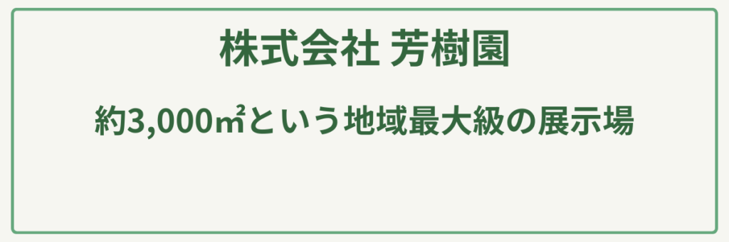 広島県東広島市で長年親しまれている芳樹園は、約3,000㎡という地域最大級の展示場を構え、樹木の販売から造園・外構工事までをトータルでプロデュースする緑の総合専門店です。最大の強みは、自社で保有する特殊車両や専門道具を駆使した**「高木や大木のメンテナンス能力」と「コストパフォーマンスの高さ」**にあります。樹高15mに達する大木の防除や伐採も自社車両で迅速に対応できるため、他店では断られるような難しい案件でも安心して相談できます。