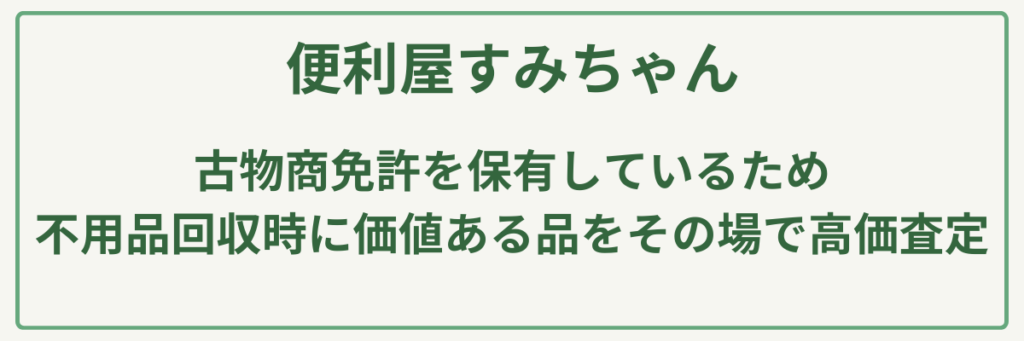 | ポイント | 遺品整理士在籍/一般廃棄物・産業廃棄物収集運搬業許可業者と連携/古物商許可取得により買取対応が可能/土木工事・リフォーム・解体工事まで対応可能な建設・総合便利サービス/東広島市主催イベントへの参画や地域活動に根ざした高い信頼性 |
