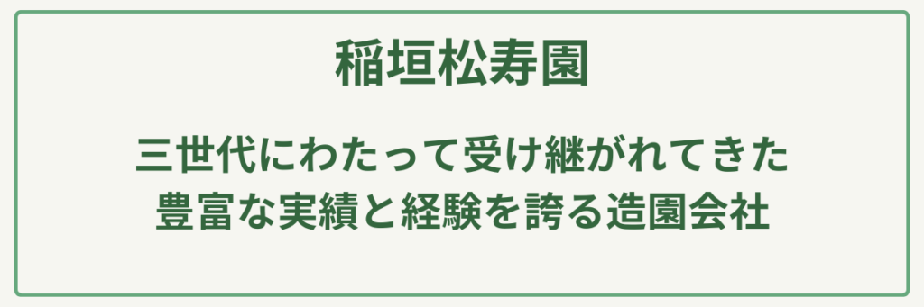 | ポイント | 設立1975年、三世代にわたり地域に根ざした圧倒的な施工実績と信頼/2級造園技能士、2級造園施工管理技士在籍による質の高い現場管理/日本庭園から人工芝、ブロック塀などの外構まで幅広く対応可能/環境に配慮した資材選定や、近隣住民への徹底したマナー・配慮/空き家管理や事業所の維持管理など、多様なニーズに応える機動力 |