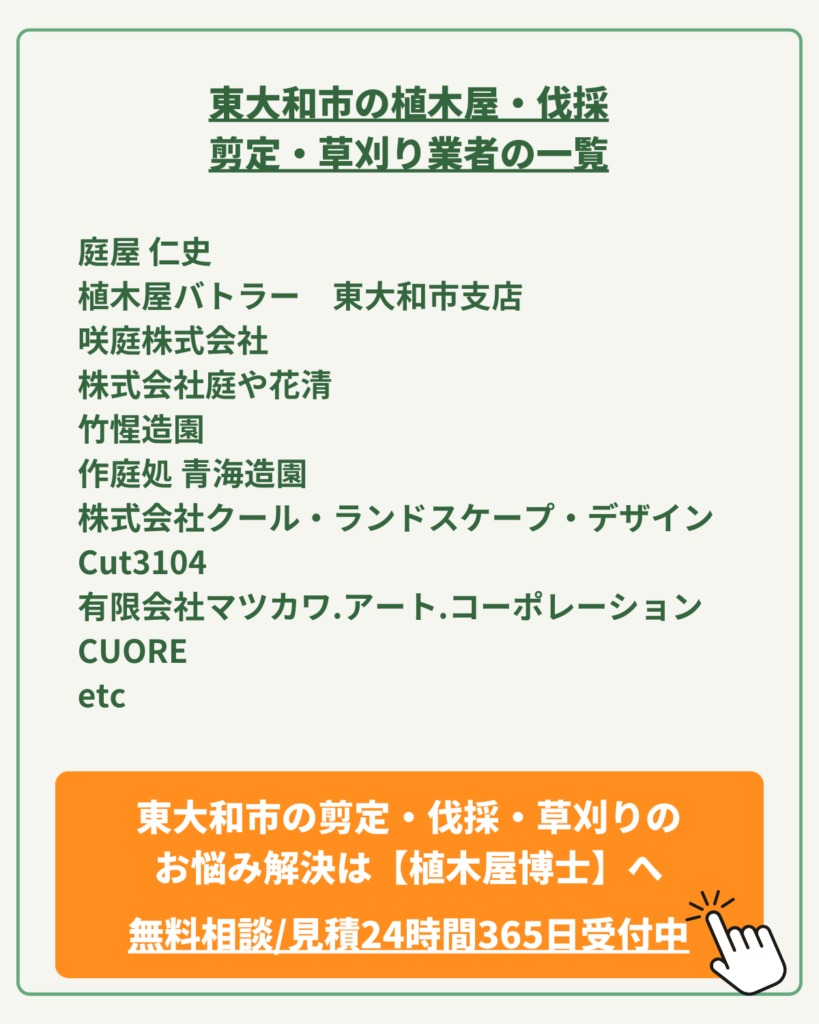 今回は、そんなお悩みを抱えるあなたに向けて、植木屋博士運営が、東大和市の植木屋さん達をご紹介します。