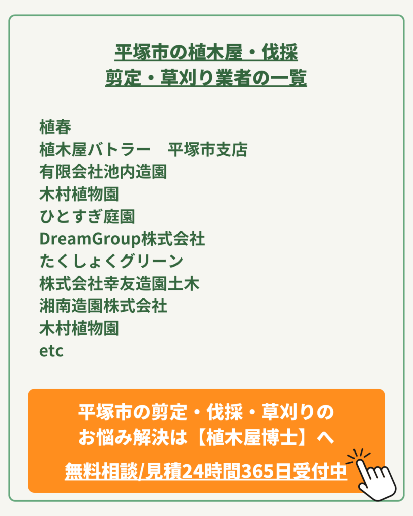 今回は、そんなお悩みを抱えるあなたに向けて、植木屋博士が、平塚市の植木屋さん達をご紹介します。