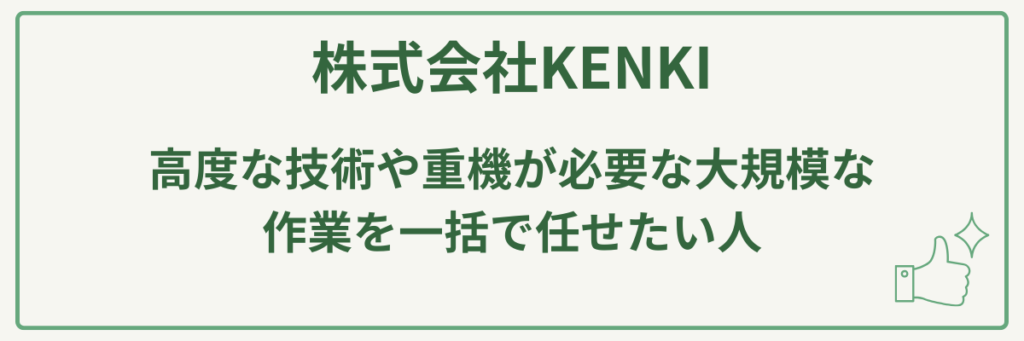株式会社KENKIは、林業、土木、解体、建築、そして造園工事まで、暮らしと環境に関わる様々な業務を幅広く施工できる「何でもできる会社」**であることが最大の強みです。