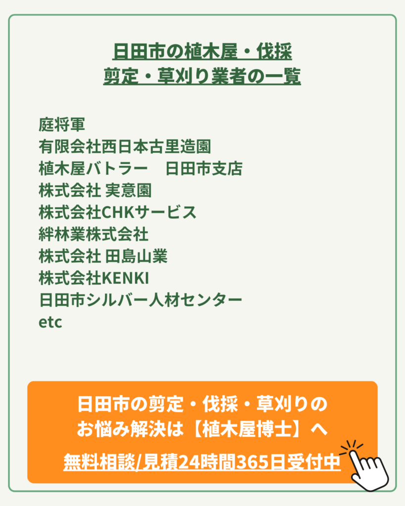 今回は、そんなお悩みを抱えるあなたに向けて、植木屋博士が、日田市の植木屋さん達をご紹介します。
