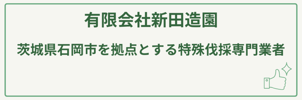有限会社新田造園は、茨城県石岡市を拠点とする特殊伐採専門業者です。