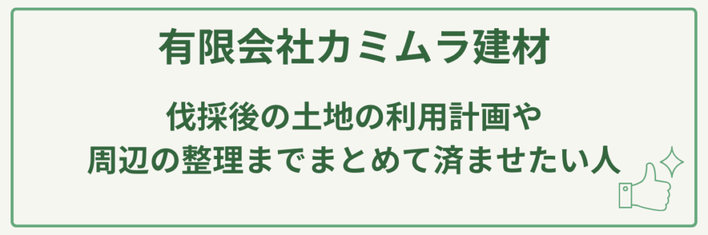 そのため、他社に断られた難易度の高い高所伐採を依頼したい人や、敷地条件が厳しく安全性が懸念される場所の樹木を確実に撤去したい人におすすめです。