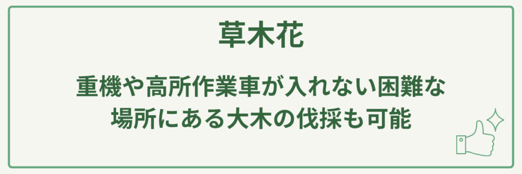 そのため、他社では対応が難しい場所にある危険木や高木の伐採を確実に任せたい人におすすめです。