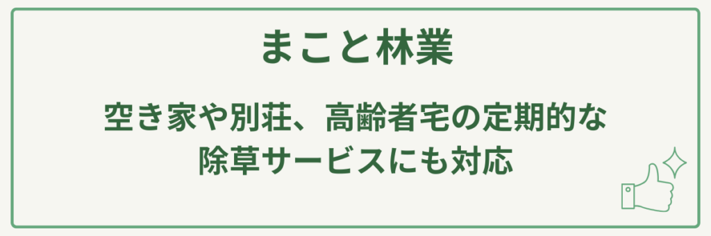 | 対応サービス | 伐採、特殊伐採、除草、緑地管理(企業敷地、空き地・空き家・別荘)、危険木・倒木処理、高齢者宅の定期除草サービス |
