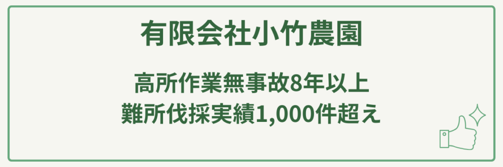 | ポイント | 高所作業無事故8年以上、高所・難所伐採実績1,000件突破 |