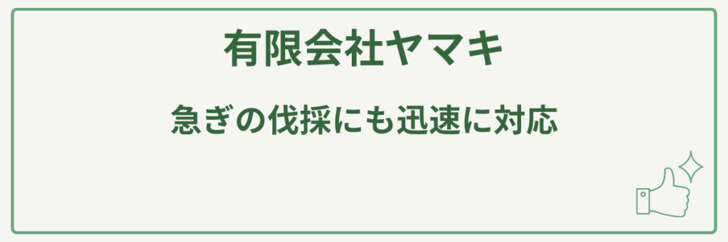 | 対応サービス | 特殊伐採、立木の伐採、伐採後の薪としての再利用 |