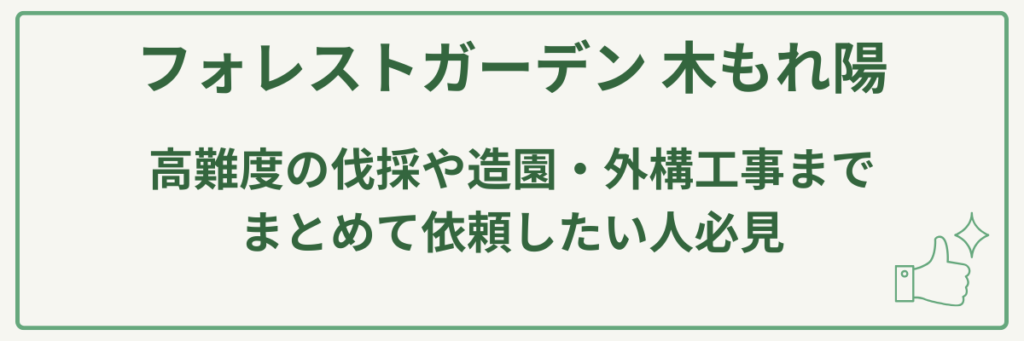 フォレストガーデン 木もれ陽は、茨城を中心とした北関東エリアで活動する伐採・造園業者です。