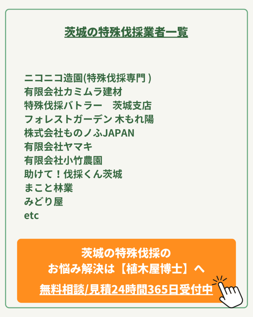 今回は、そんなお悩みを抱えるあなたに向けて、植木屋博士が、茨城県の特殊伐採業者さん達をご紹介します。