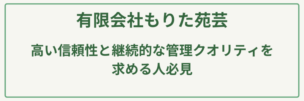 有限会社もりた苑芸は、埼玉県を拠点に創業から37年以上の歴史を誇る、経験豊かな緑地管理のスペシャリストです。最大の強みは、個人住宅から公共施設、大規模工場まで多岐にわたる現場で培われた「確かな技術力」と、地域に根ざした「迅速・丁寧・安全」を徹底する誠実な仕事ぶりにあります。季節ごとの植物の特性を熟知したプロが、単にお手入れをするだけでなく、住む人が快適に過ごせる景観美を追求してくれます。長年の実績に裏打ちされた安心感があるため、初めて植木屋を依頼する方はもちろん、工場の緑地管理やマンションの植栽メンテナンスなど、高い信頼性と継続的な管理クオリティを求める人に、特におすすめの植木屋です。